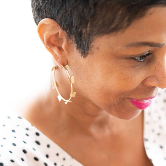 Gold Butterfly Hoop Earrings