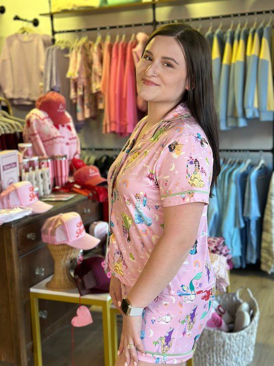 Disney Princesses Women’s Notch Collar Button-Down Shirt and Shorts Sleepwear Set