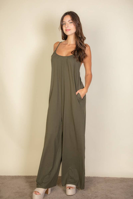 Sold outSpaghetti Strap Jumpsuit: Olive