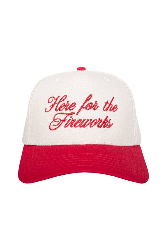 Here For The Fireworks 4th of July Hat: Red and Tan