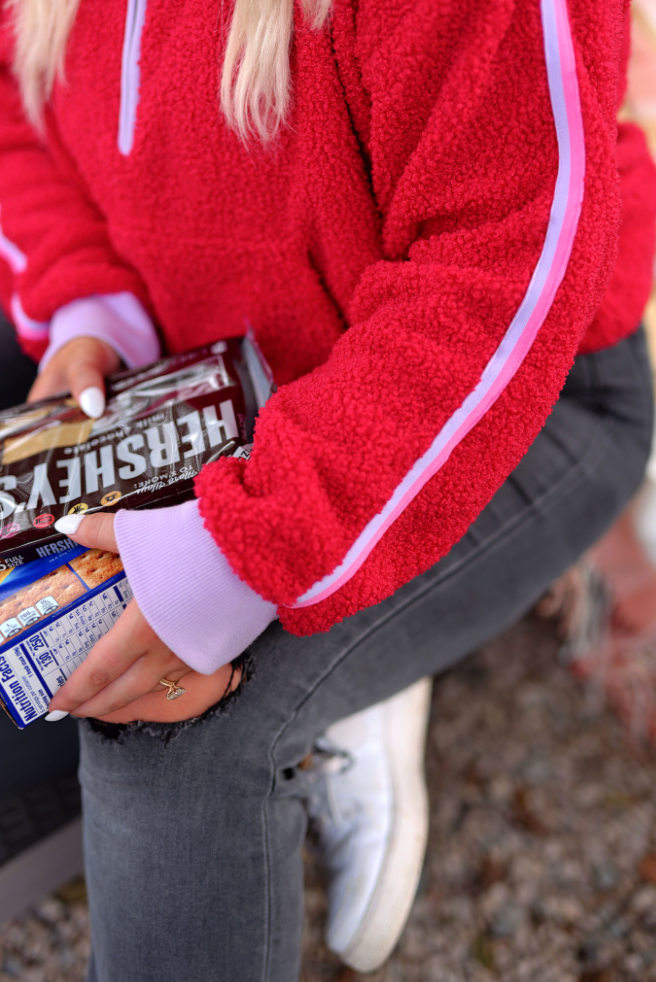 Around the Clock Teddy Quarter Zip Pullover- Cherry Red