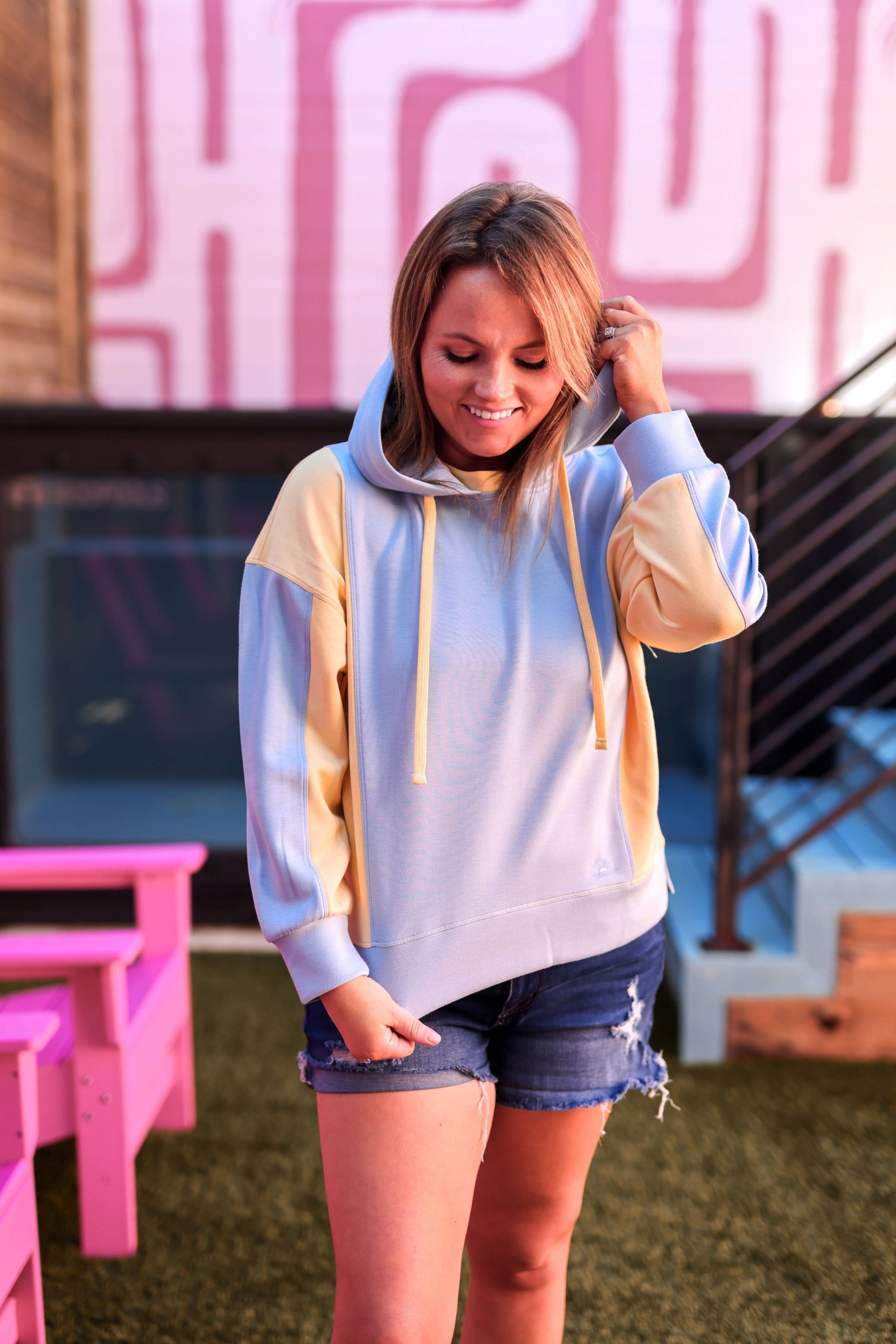 Errands To Run Colorblock Hoodie - (Sky Blue/Butter Yellow)