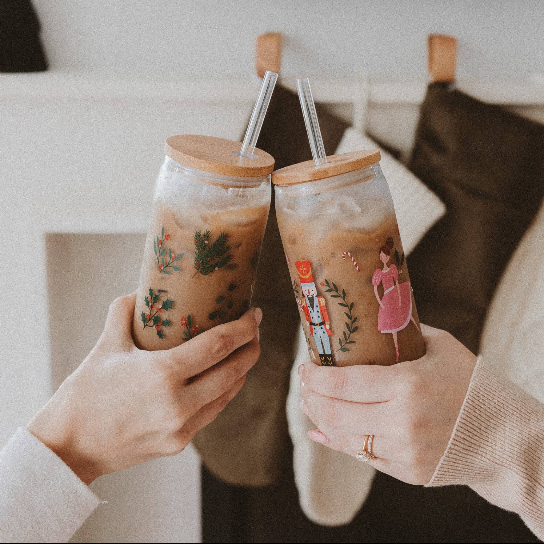 Nutcracker 17 oz Can Glass w/ Straw & Lid