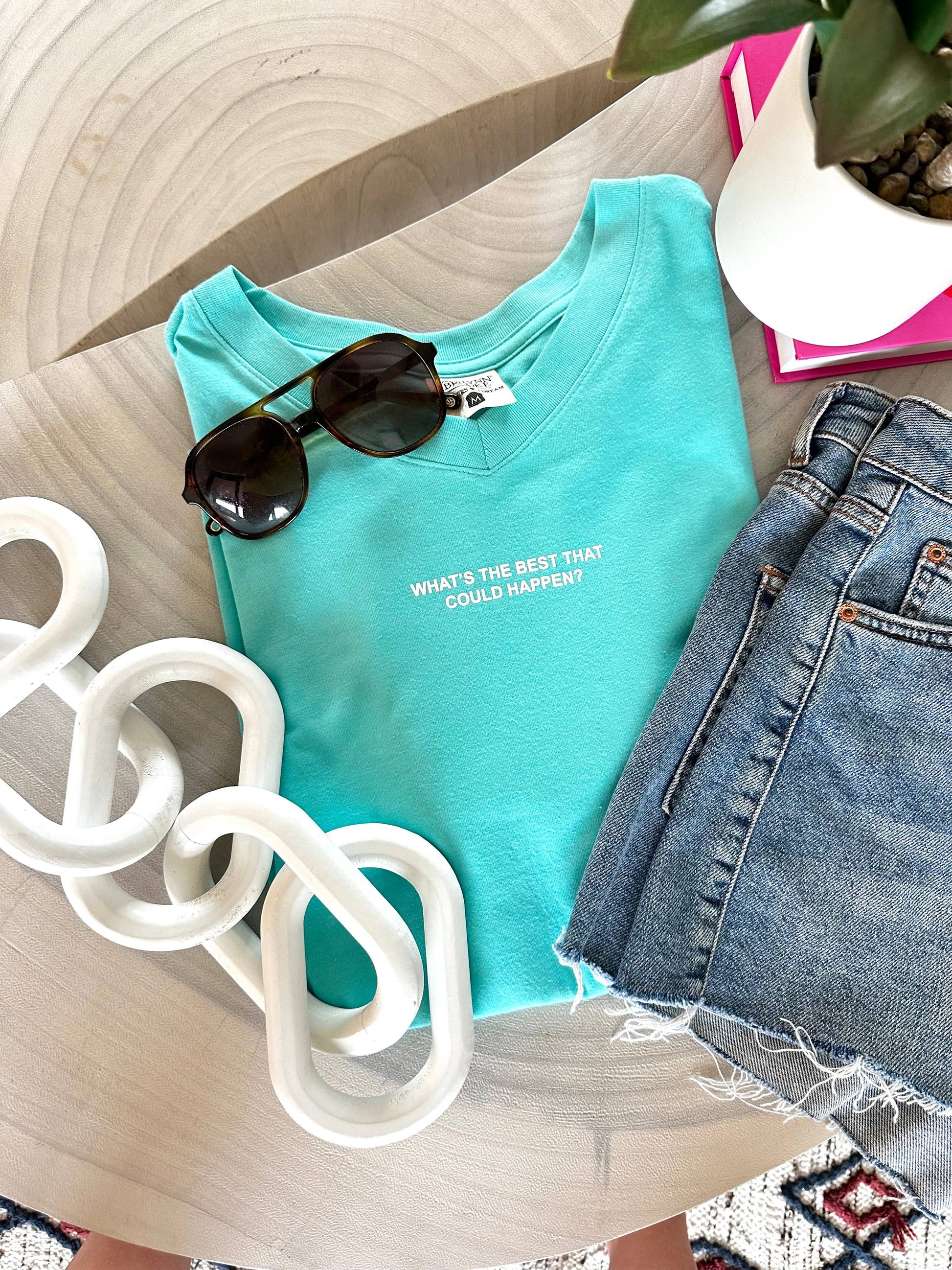 Heather Seafoam SS Vneck with screen printed